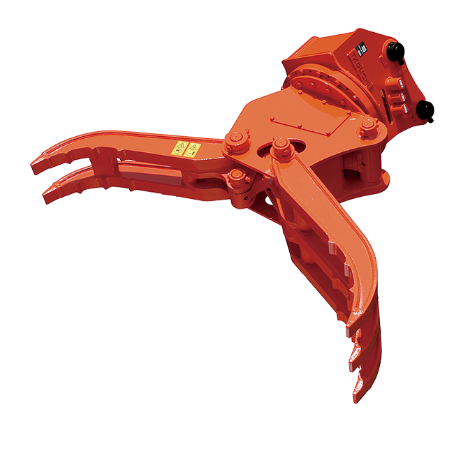 首振り機能に360°全旋回機能をプラス。対象物をしっかりとつかんだまま旋回動作することが可能です。軽量で旋回輪もスマートなデザインなので、狭い敷地での木造解体に最適です。標準機はもちろん、ミニショベルから大型機まで幅広いラインアップを揃えるタグチのロングセラー商品です。